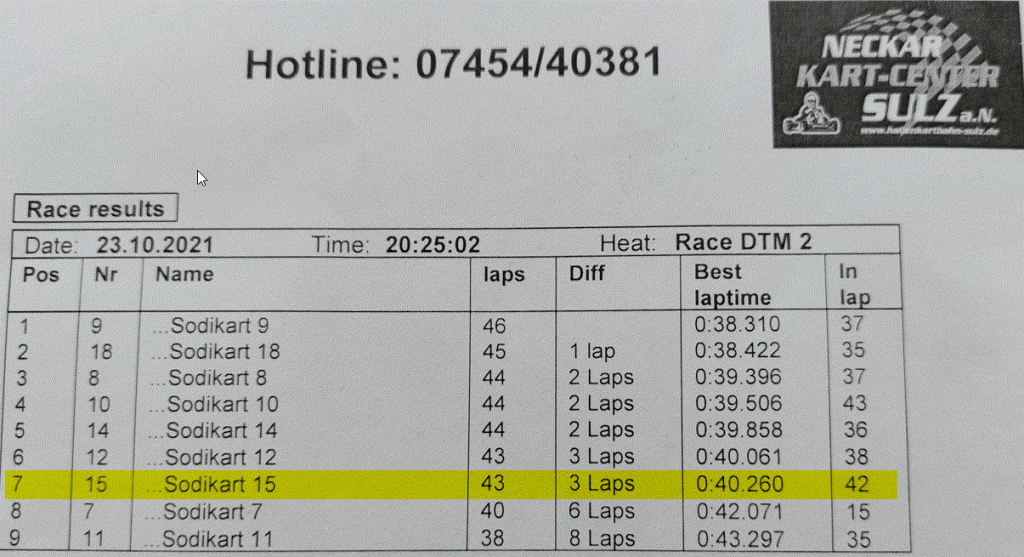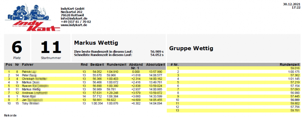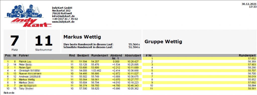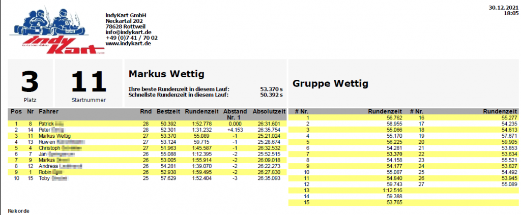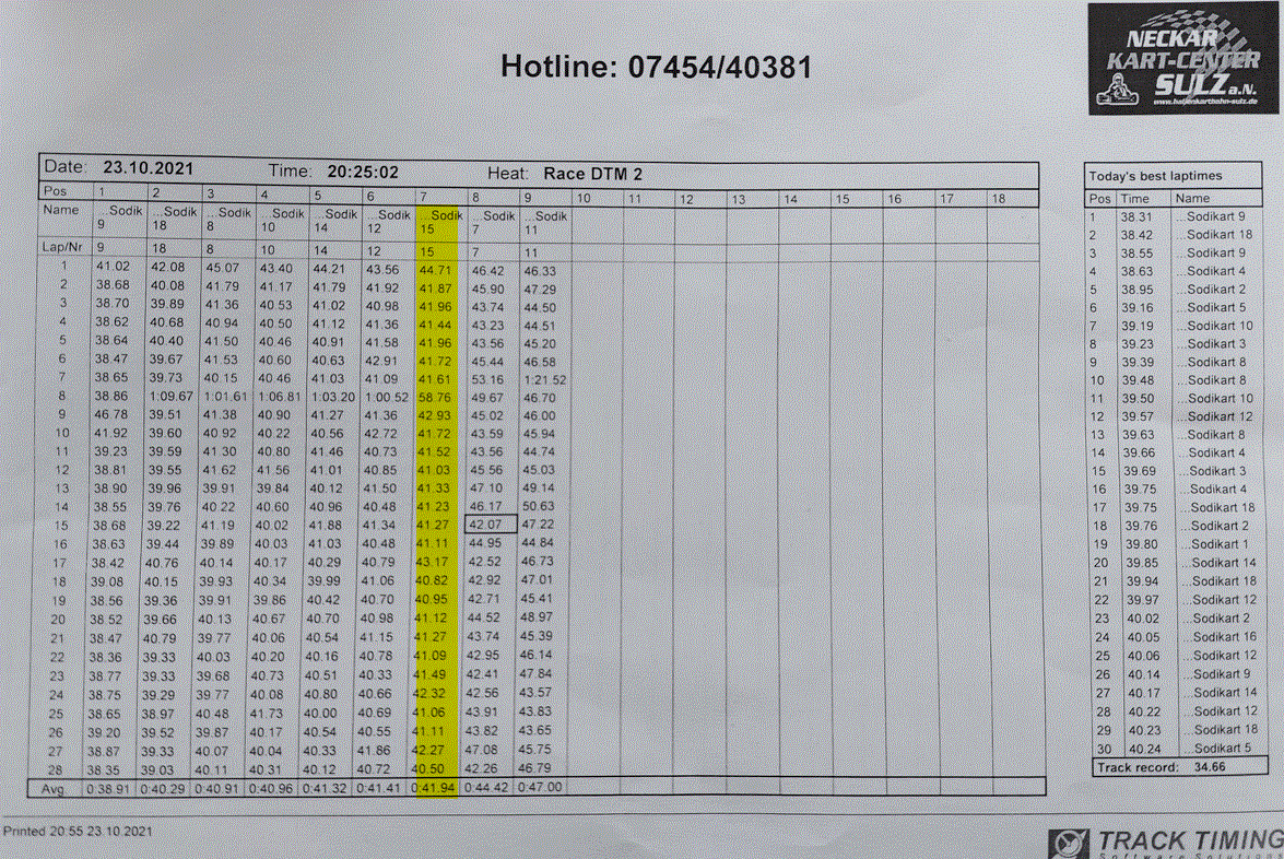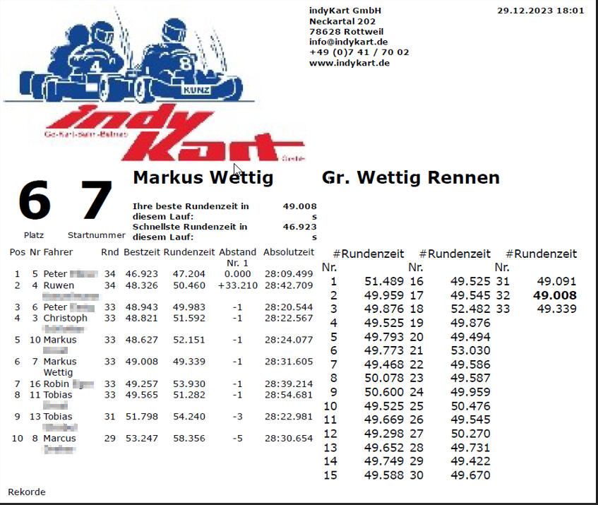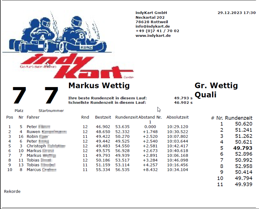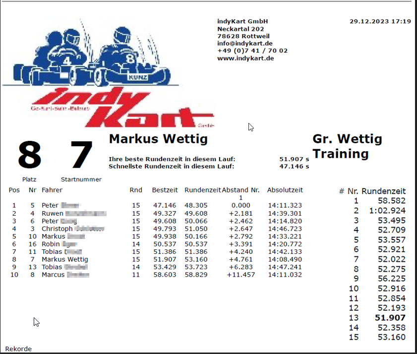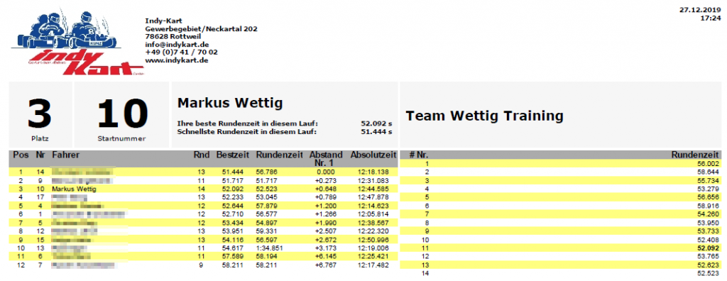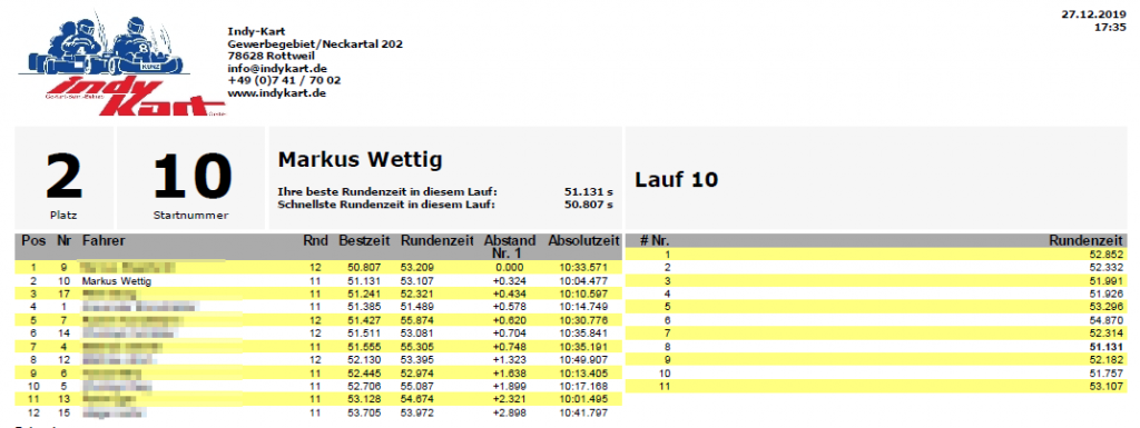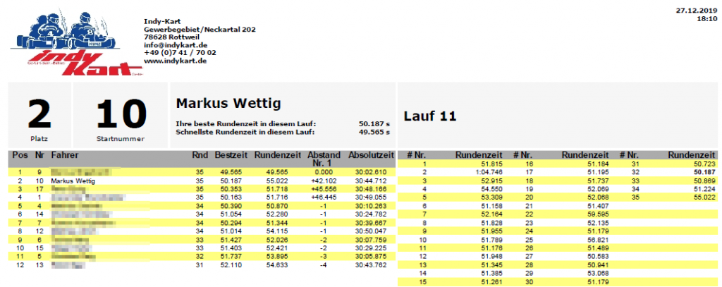Kartsport Veranstaltungen 2023 Kartbahn Indy-Kart Rottweil Datum 29.12.2023 Lauf Warm-Up Qualify Rennen Rang 8 7 6 Beste Runde 0:51,907 0:49,793 0:49,008 Tabellen 2021 Kartbahn Indy-Kart Rottweil Datum 30.12.2021 Lauf Warm-Up Qualify Rennen Rang 6 7 3 Beste Runde 0:56,989 0:55,564 0:53,370 Tabellen Kartbahn Hallenkartbahn Sulz Datum 23.10.2021 Lauf Rennen Rang 7 Beste Runde 0:40,260 Tabellen 2019 Kartbahn Indy-Kart Rottweil Datum 27.12.2019 Lauf Warm-Up Qualify Rennen Rang 3 2 2 Beste Runde 0:52,092 0:52,332 0:50,187 Tabellen